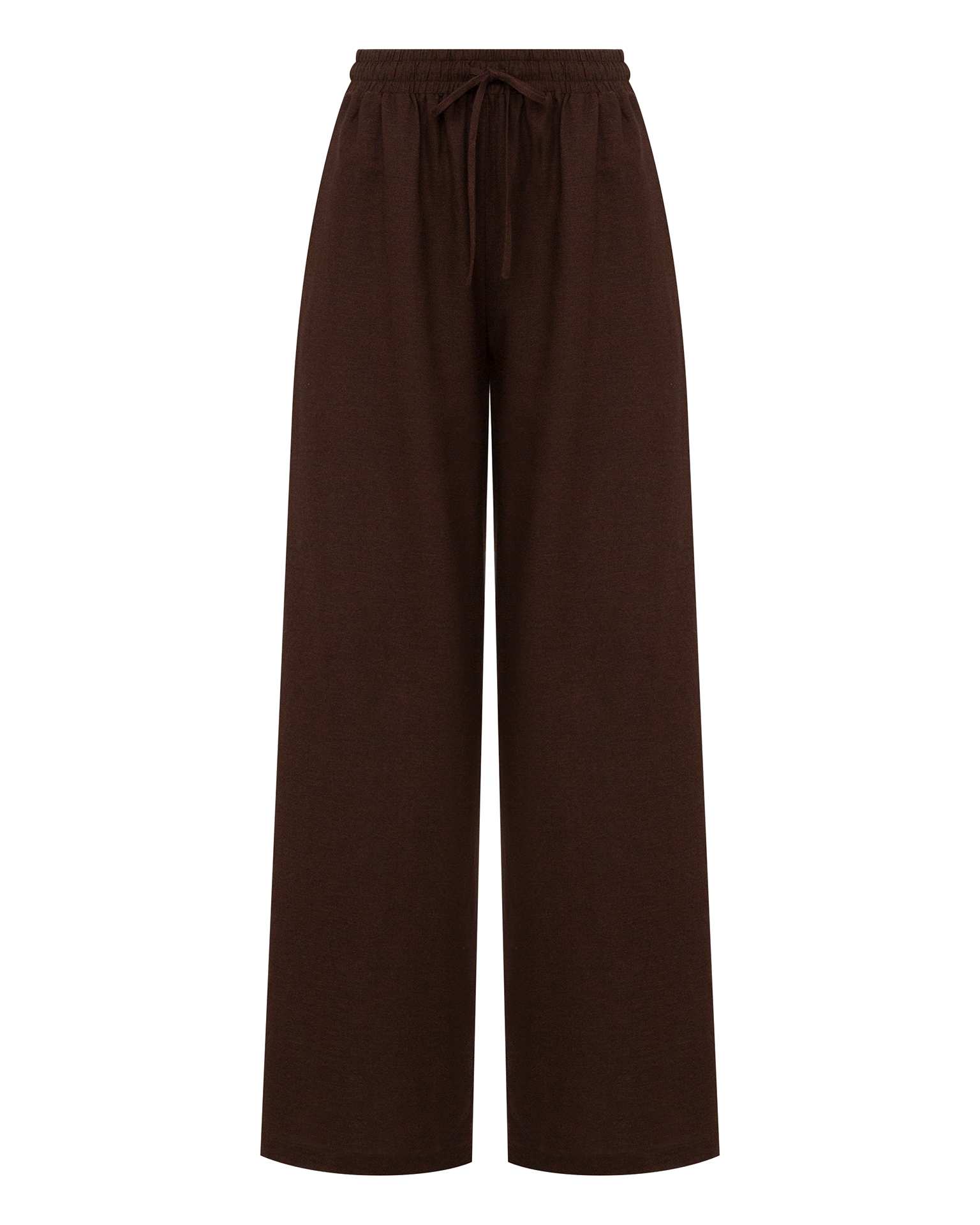 Льняной костюм — это изысканное сочетание практичности и элегантности. Комплект состоит из двух предметов: свободной рубашки на пуговицах и широких брюк-палаццо. Рубашка имеет регулируемые рукава с возможностью сворачивания, а также боковые разрезы, подчёркивающие непринуждённый характер модели. Брюки оснащены эластичным поясом, что обеспечивает комфортную посадку и адаптацию под разные типы фигур.