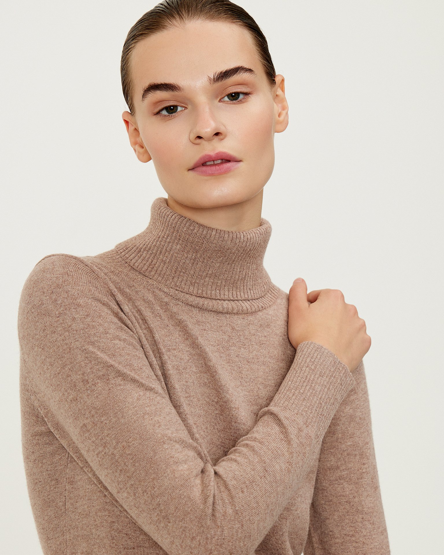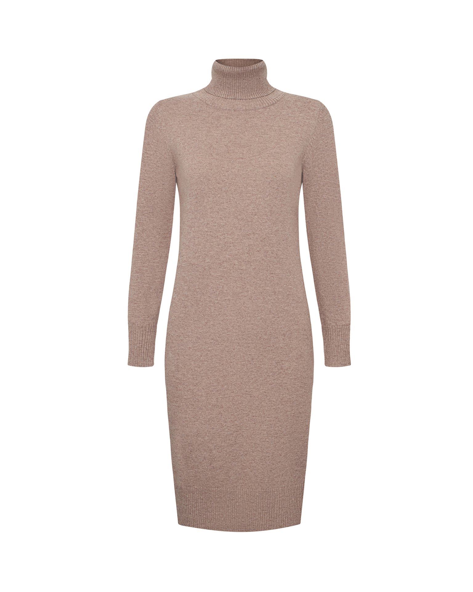 <ul><li>A cosy knitted dress with a straight cut;</li><li>This model features a high double collar, long set-in sleeves, and subtle side slits. Composition: 58% viscose, 26% wool, 12% nylon, 4% cashmere</li></ul>