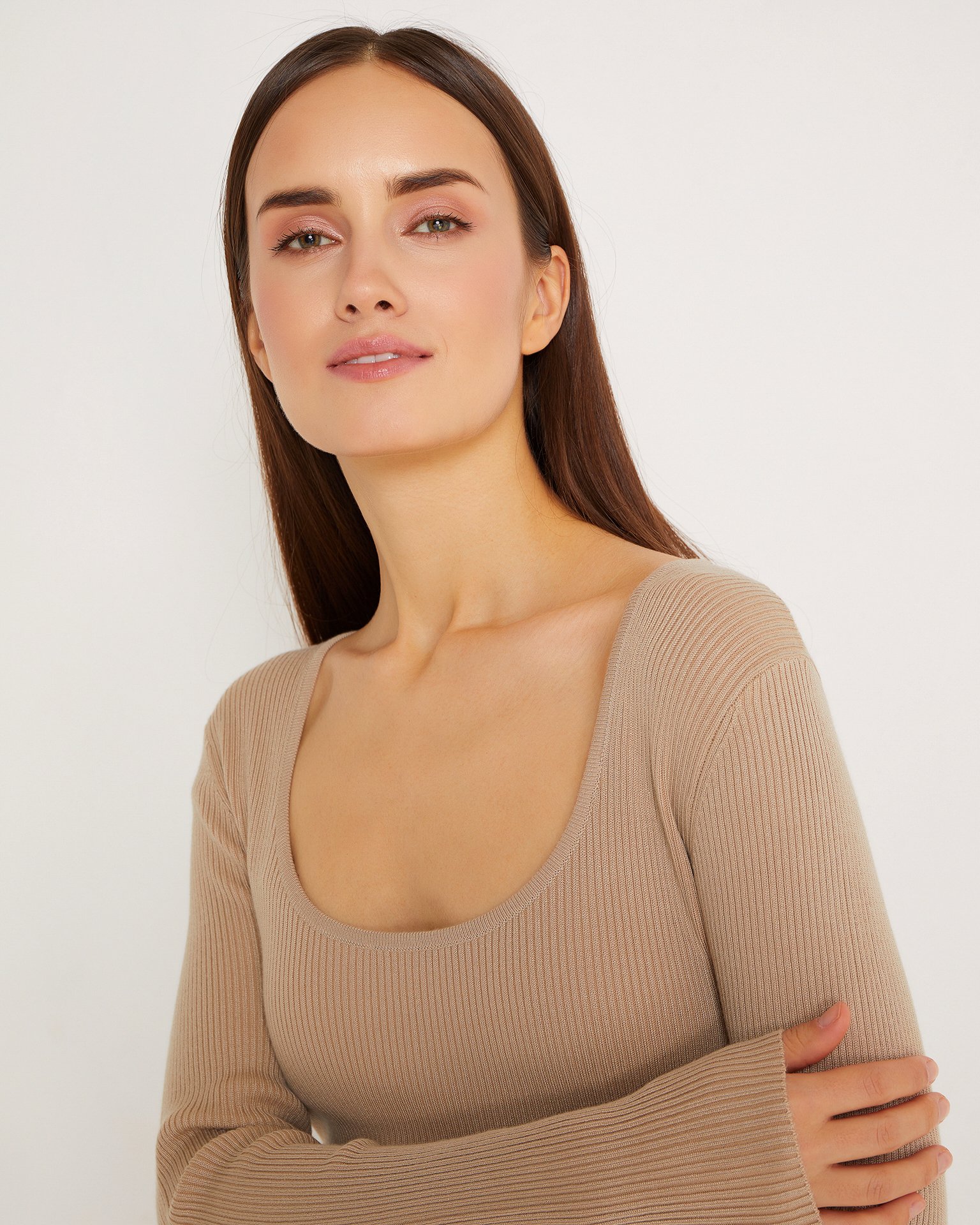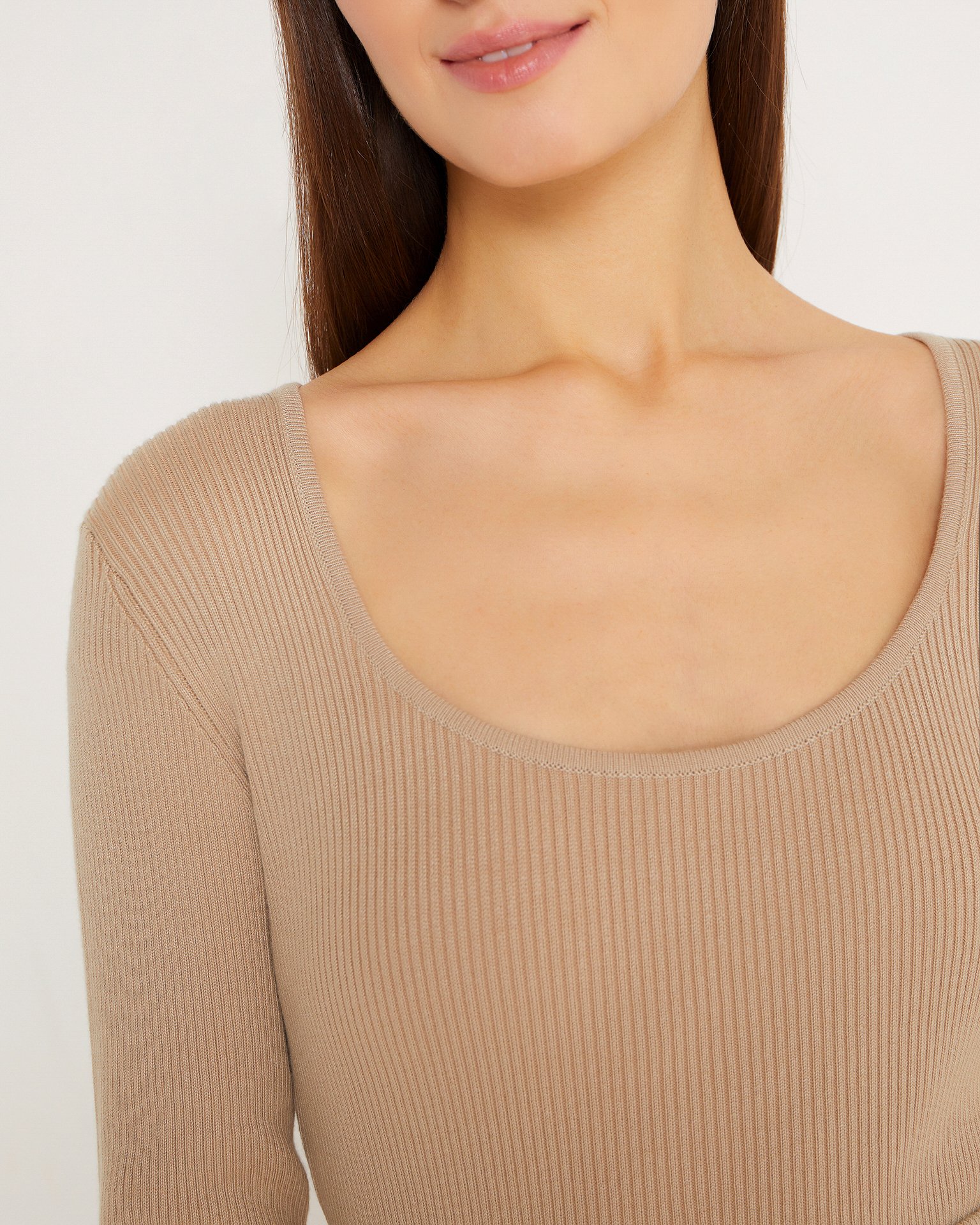 A jumper with a deep round neckline and long sleeves, crafted from viscose. This style is perfect for creating various casual looks: pair this long sleeve with jeans and chunky trainers or with straight-leg classic trousers and a relaxed-fit shirt, either checked or solid-coloured. Composition: 100% viscose