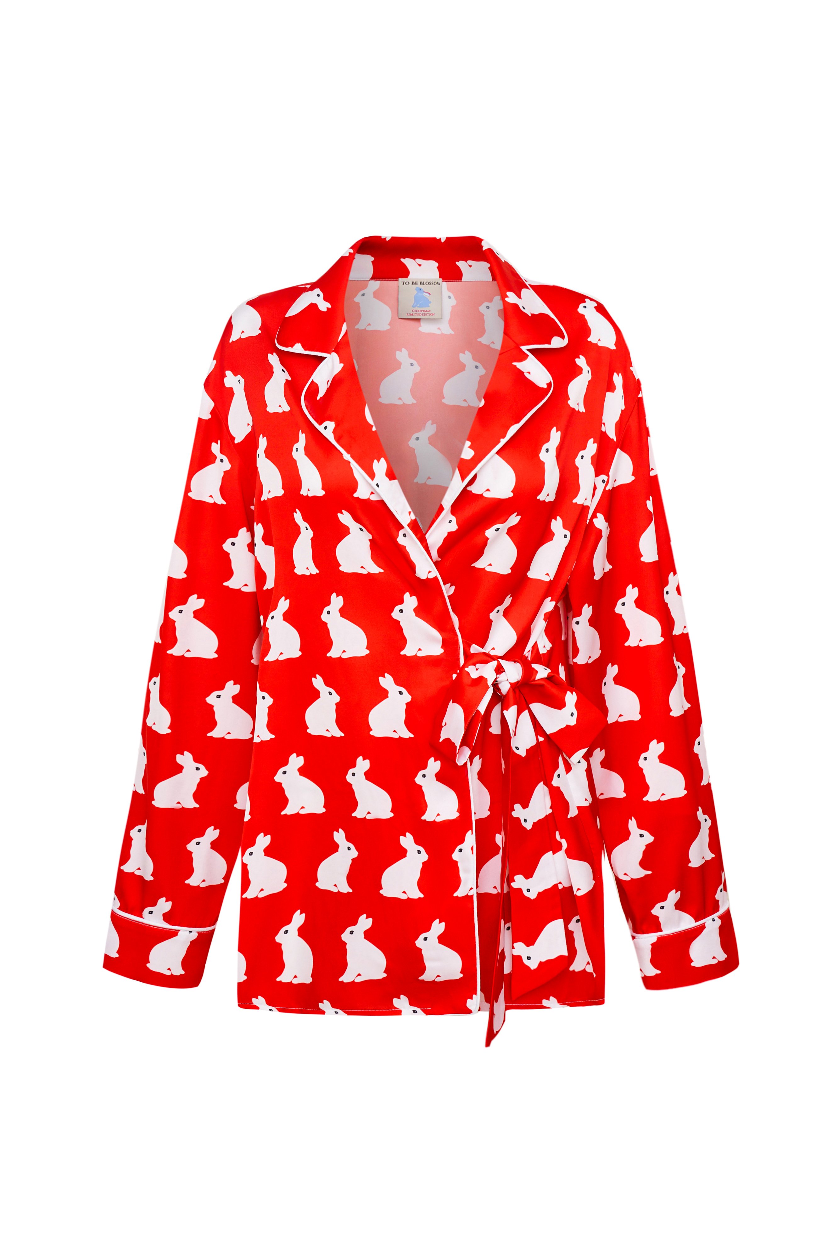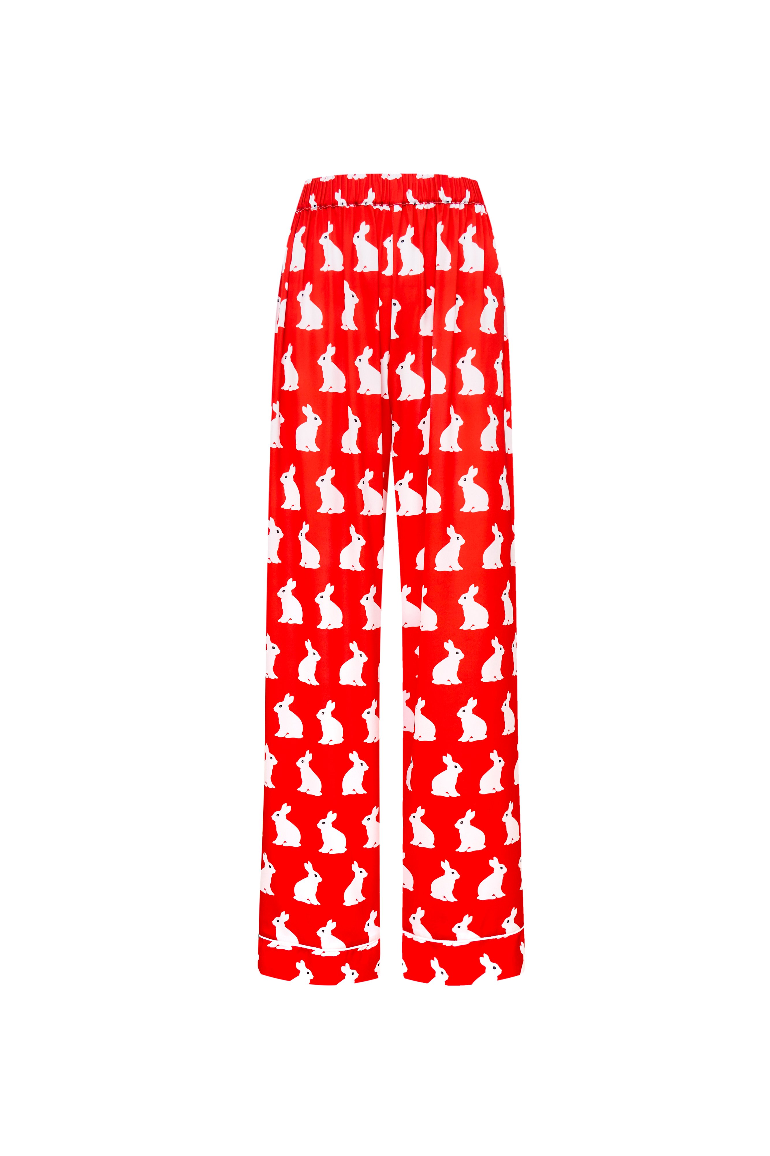 A pyjama set from the limited edition. A red pyjama with trousers and a shirt featuring a rabbit pattern. The perfect outfit for a pyjama party or a family photoshoot, especially when paired with the new collection's socks. Model wears size S Model's measurements: Height: 172 cm, bust 84 cm, waist 60 cm, hips 88 cm.