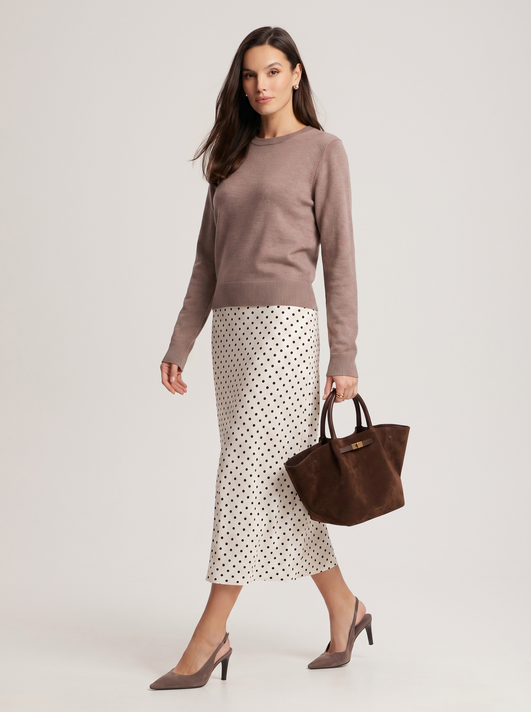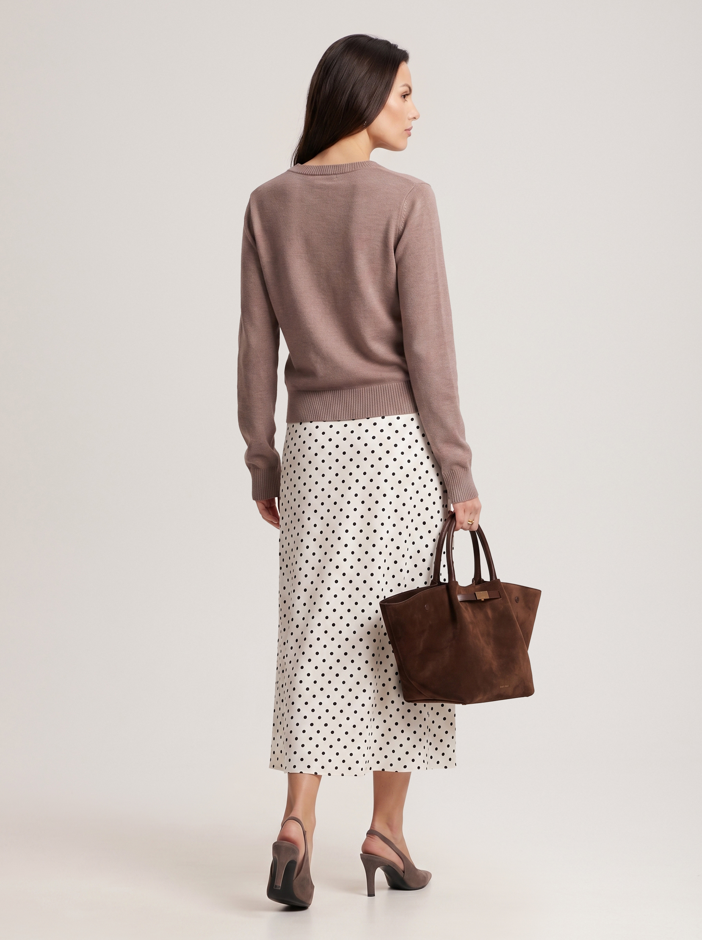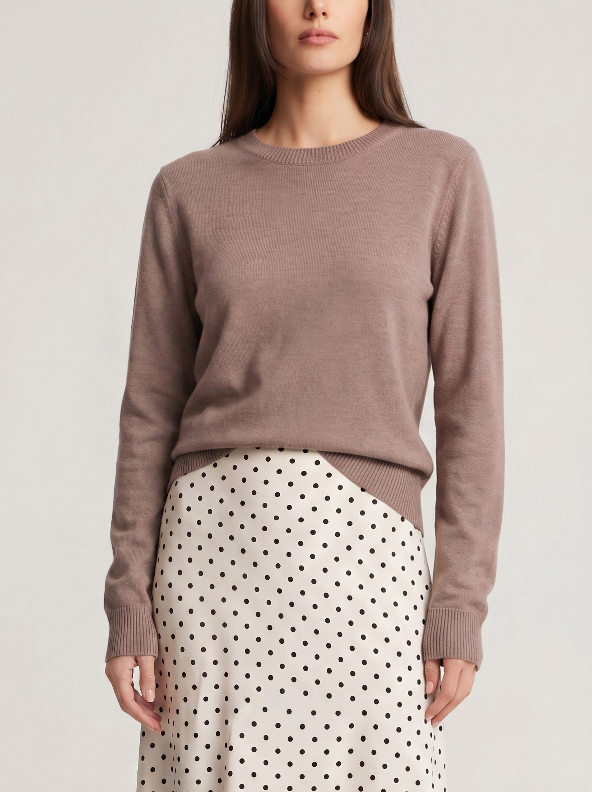 A basic jumper in a coffee colour that is easy to style with any pieces already in your wardrobe, from feminine skirts to relaxed jeans. Model's measurements: height 177, bust 84, waist 61, hips 92 Model wears size: S