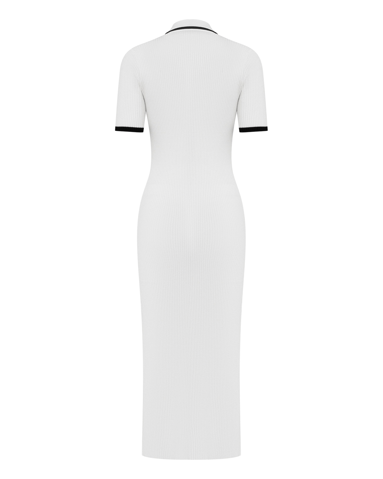 Изысканное трикотажное платье миди словно создано для того, чтобы подчеркнуть женственность и утончённость образа. Выполненное в лаконичной бело-чёрной гамме, оно завораживает своей простотой и в то же время продуманностью деталей. Главную изюминку создаёт вертикальная линия чёрных пуговиц, элегантно проходящая по центру платья — она визуально вытягивает силуэт, делая фигуру более стройной. Параметры модели: рост 175 см, грудь 85 см, талия 60 см, бёдра 92 см. Размер на модели: S.